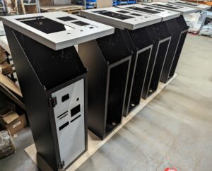 Another customer order nearing completion for change machines. These were manufactured in batches of 10, and we have now delivered over 100 of these kiosks.